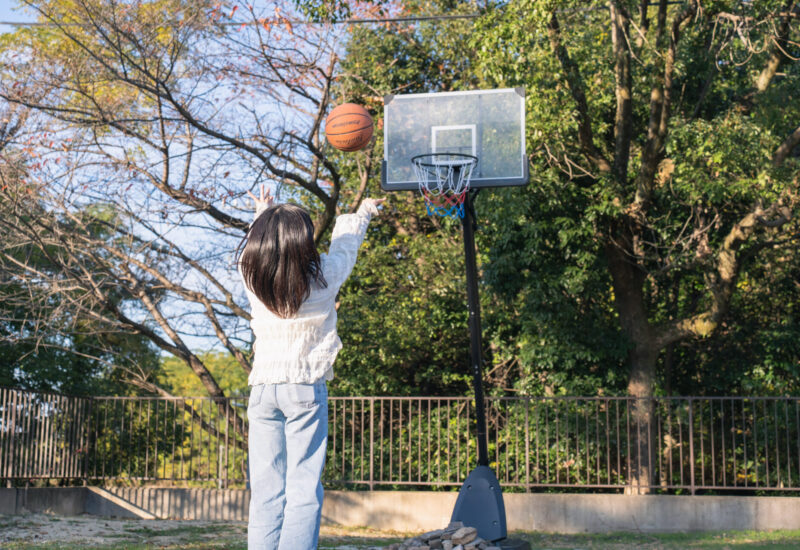 施設内にバスケットゴールが取り付けられました! 約ハーフコート分の広さがあるので、シュート対戦やフリースローなど、白熱した対戦が可能です🔥