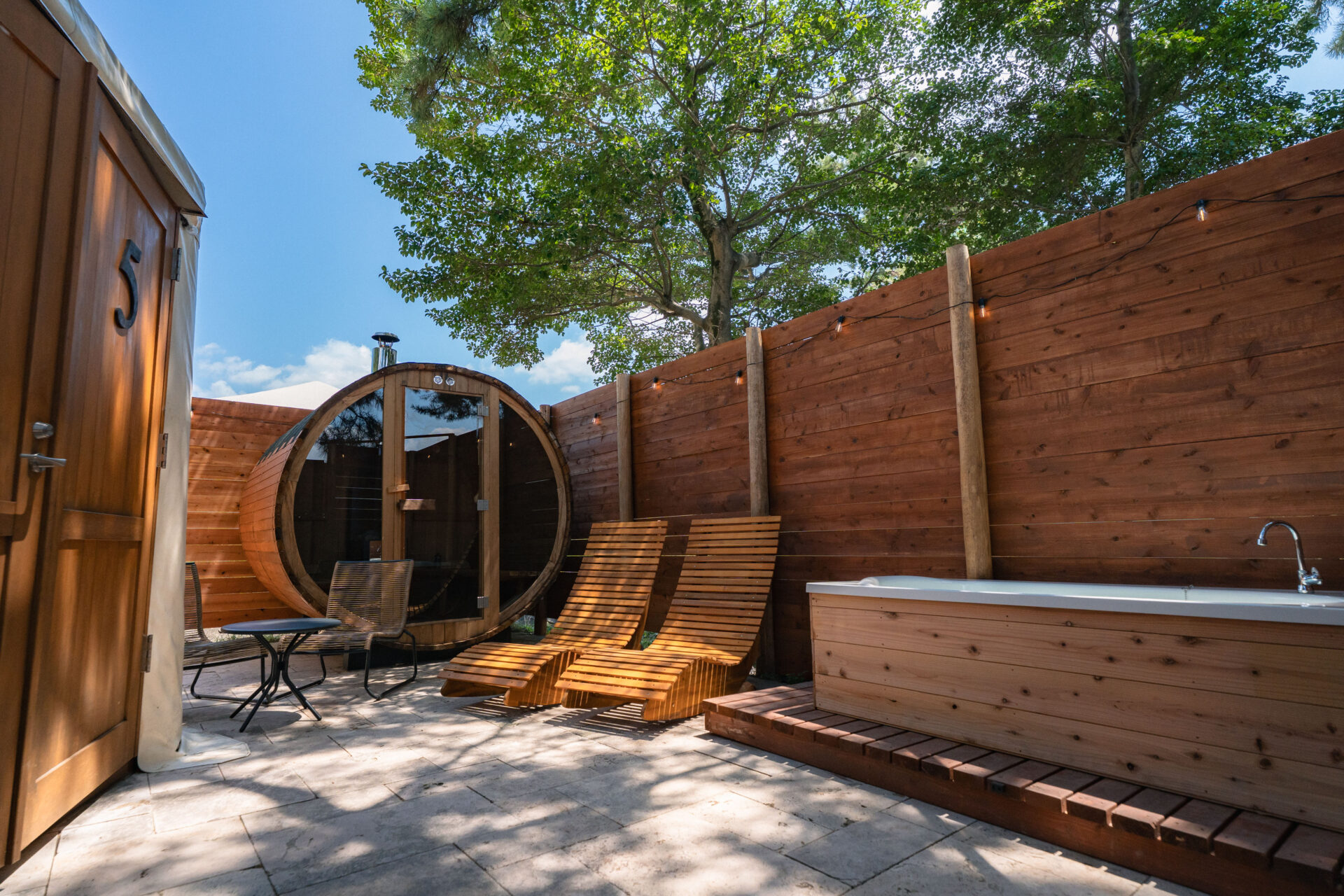 いちのみや -紡-グランピングのスイートルーム宿泊者限定で、貸切のバレルサウナに入っていただくことが可能です。