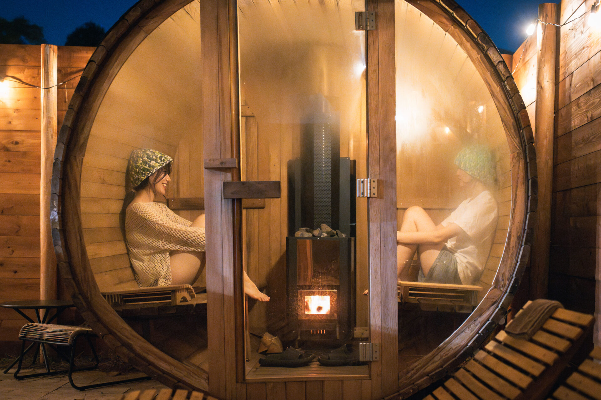 グランピングのスイートルーム宿泊者限定で、貸切のバレルサウナに入っていただくことが可能です。