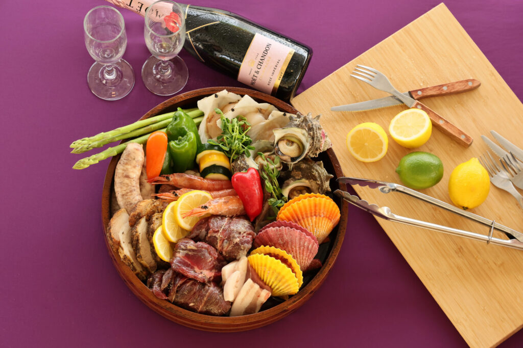 華やかな盛り合わせのバーベキュープレートは、女子会やデートにもぴったりです。