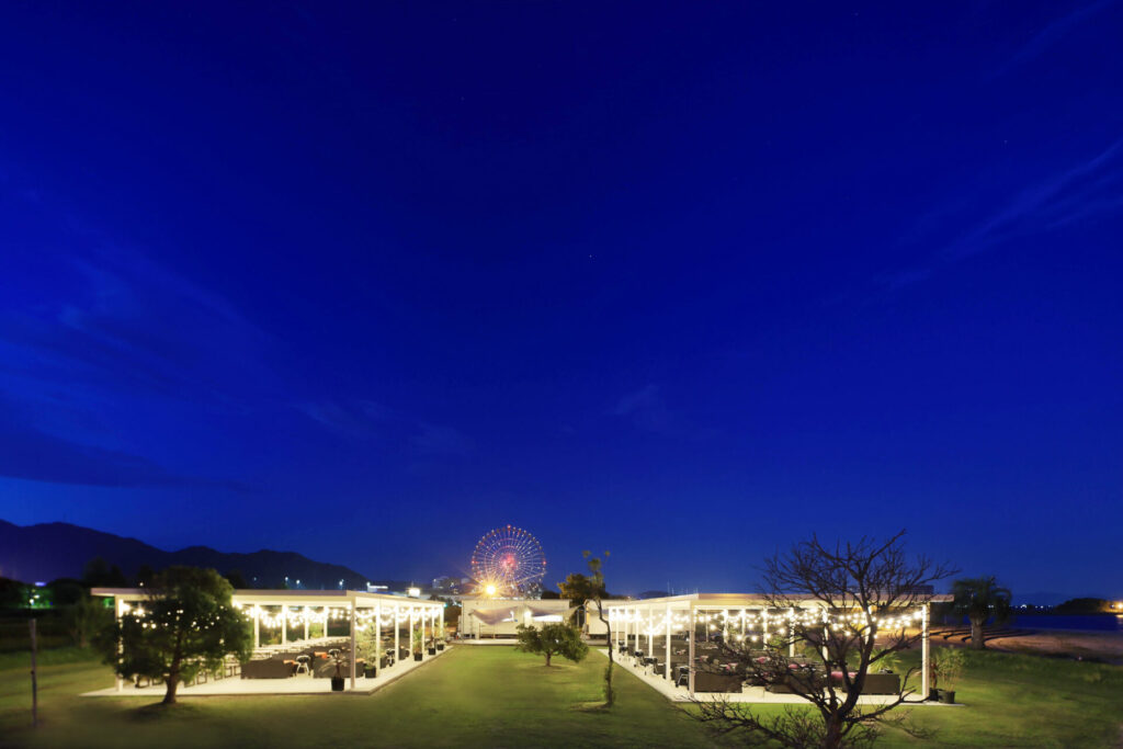 一面人工芝を敷き詰めた開放的なリゾート空間と、煌びやかな照明のおしゃれな空間で楽しむバーベキューは、女子会やデートに最適です。