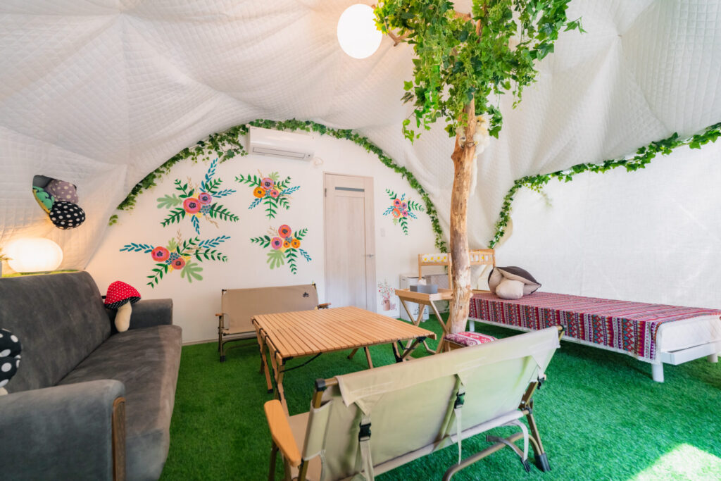 ウッドデザインパークいちのみやの最大の特徴は、「日帰りグランピング」ができる施設!