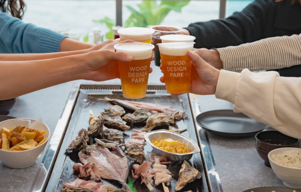 すべてのコースで焼き牡蠣・蒸し牡蠣をお好きなだけ楽しめるのが「ウッドデザインパーク野間」の魅力。
