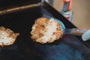 ぷりっとした牡蠣の身を使って作る、特製ぺったんこ焼き!