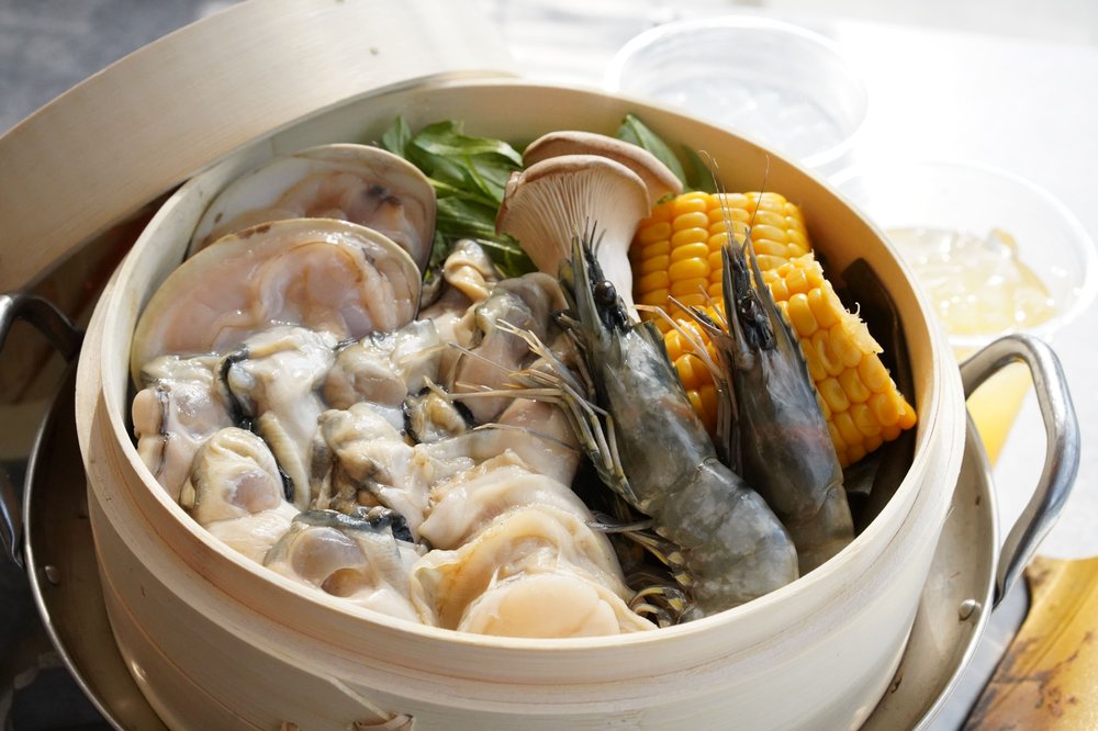 焼き牡蠣&蒸し牡蠣&カキフライに加えて、ホタテ、ハマグリ、エビなど人気の海鮮も楽しめる贅沢コース。