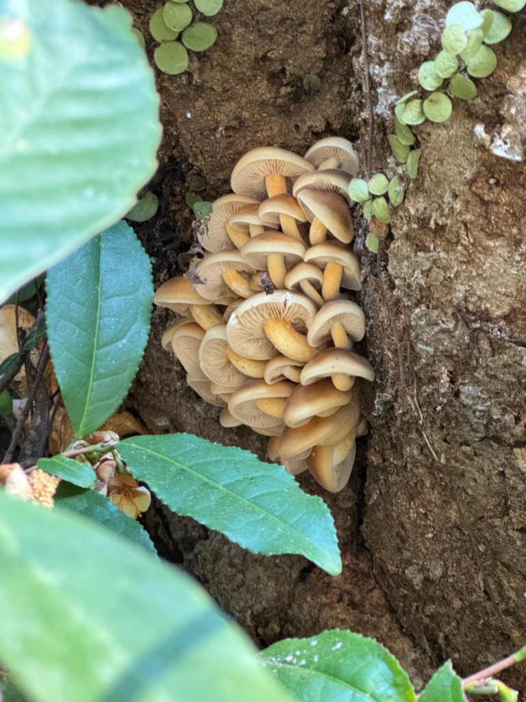 大人気自然薯料理「にゃあにゃあ庵」の店主かんじさんと朝、近くの山に野生のきのこを見にお散歩デートしました。
