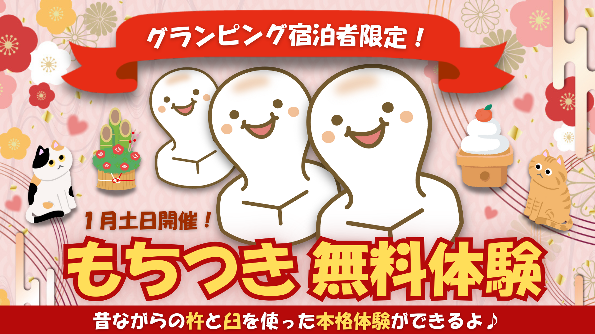 グランピングで楽しむ無料の本格もちつき体験!