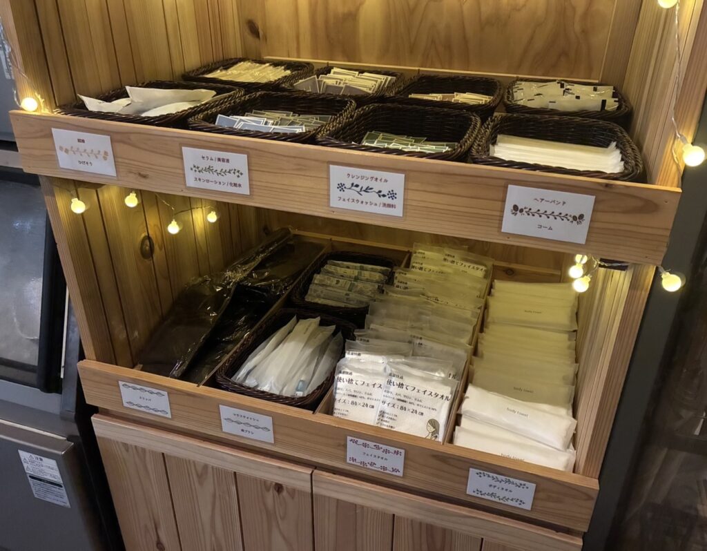 プラスチックゴミ削減に向けての取り組みおよび、お客様の利便性を高める為に受付棟の製氷機横にアメニティーバーを新設いたしました。