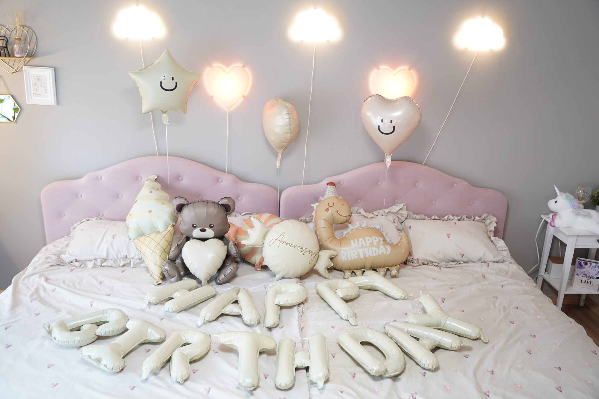 お部屋をバルーンなどで可愛く装飾し