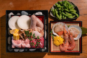 ウッドデザインパーク瀬戸のBBQは、愛知県瀬戸市ならではの地元食材をふんだんに使用。旨味たっぷりの「瀬戸山麓牛」やブランド豚「瀬戸豚」、清流で育った「鮎」など、旬の味覚が楽しめます。季節の野菜や川魚も揃い、自然に囲まれた空間で、素材の味を存分お届けします。