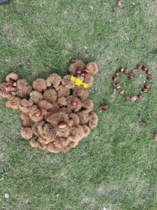 栗の実を目や鼻にして、すごくかわいらしいくまさんを発見!