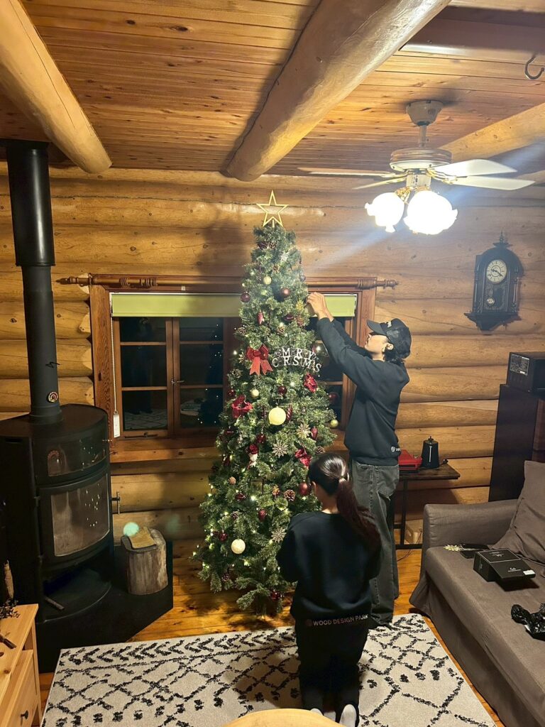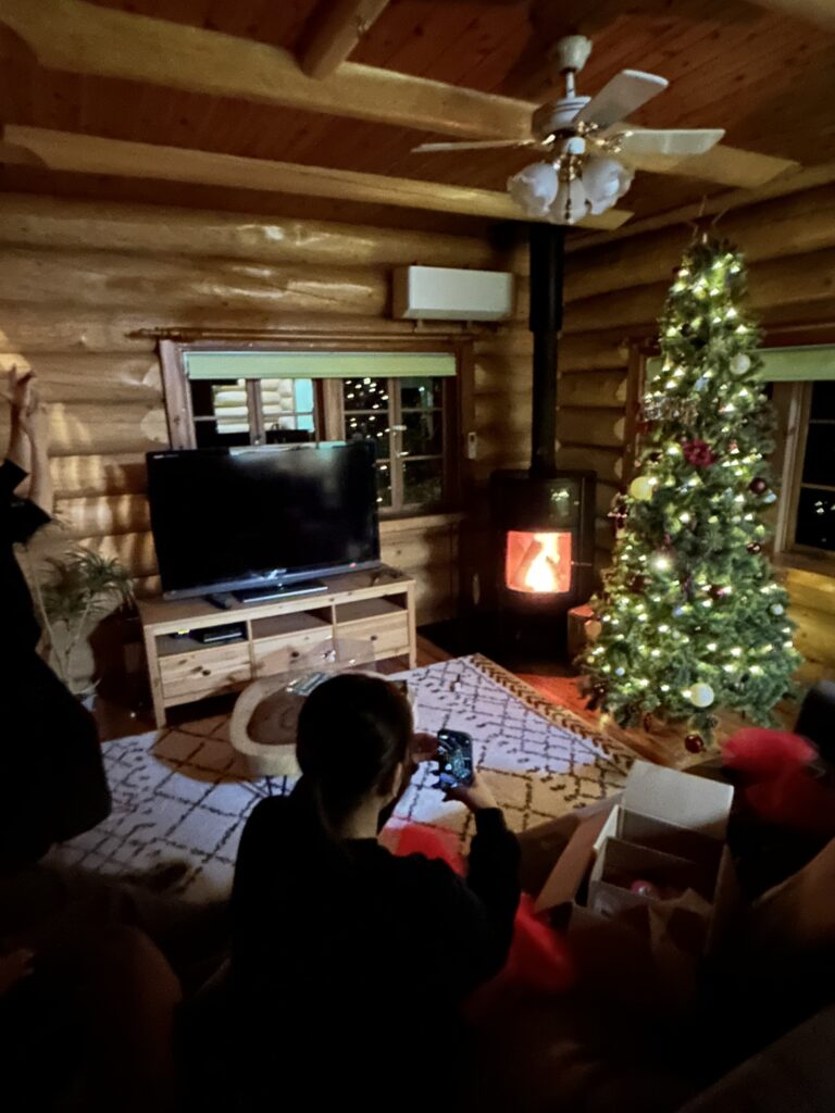とりあえず今日は、試しにコテージの中にクリスマスツリーを置いて撮影してみました📸