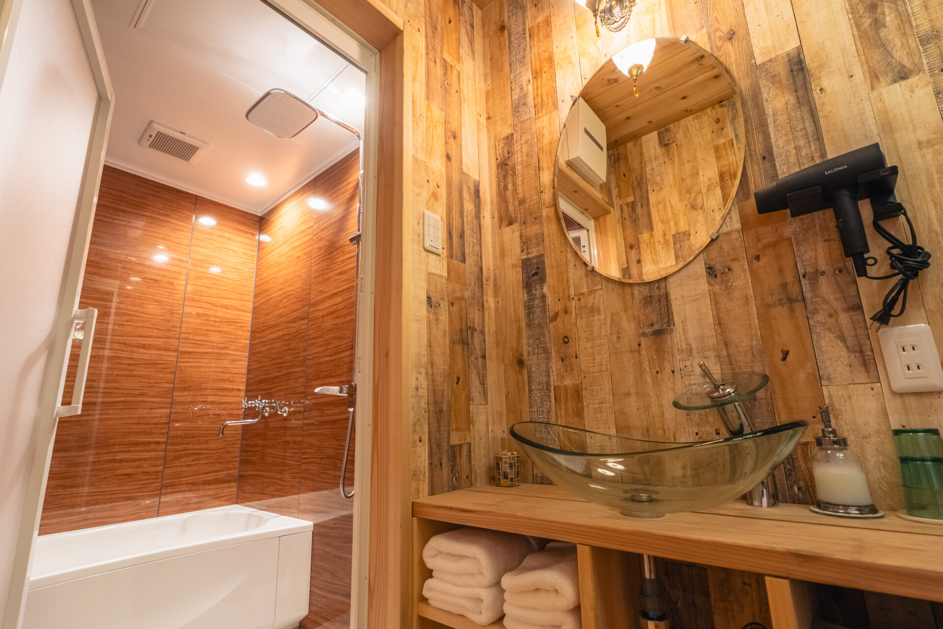 テントの中には、浴室・お手洗い・洗面台・エアコンまで完備。