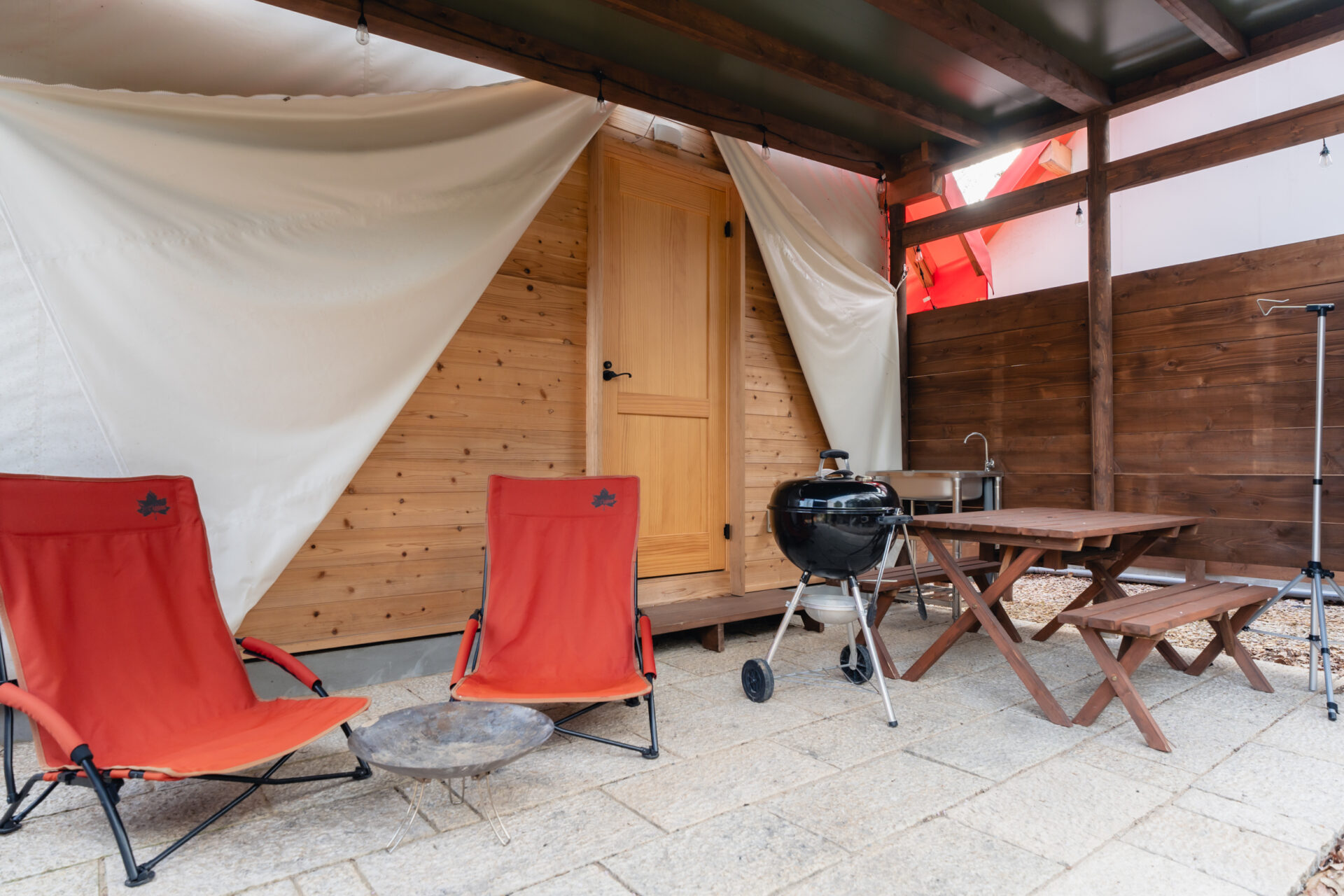 快適なグランピングテントの前はお客様だけのBBQスペースになっています。